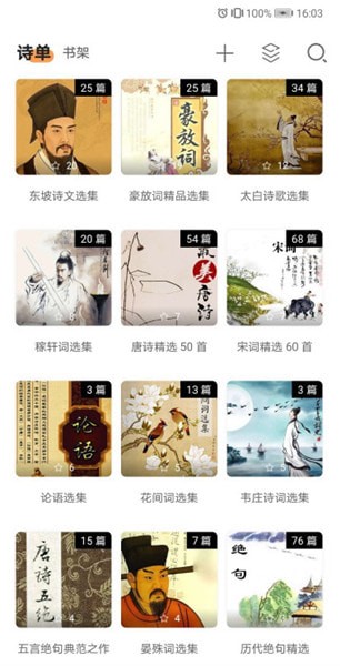 软件内集古代诗词歌赋、历代名人大家、古典名着等内容为一体,