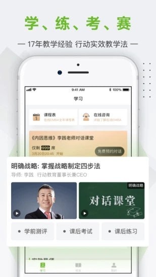 行动商学院是一款高端的企业管理学习平台,专注于提高企业家的能力,根据企业家个人的需求来量身定做课程学习,从管理教育到人才教育到系统教育,通过专业高效的课程来针对性的学习,让企业家都能学有所成,有需要的朋友赶紧下载吧!