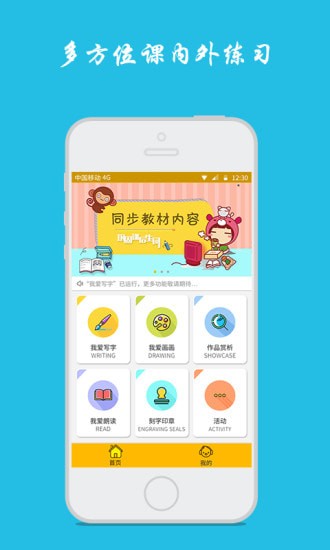 3、我爱画画、数字游戏、印章等课外功能(开发中),让小朋友在快乐中学习,在学习中成长。