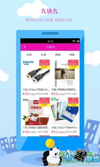 4、九块九特卖,每天都有低价特卖商品,最低低至一元包邮哦?让您花更少的钱,买更多的宝贝,放心买买买。