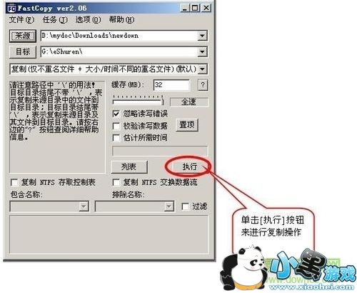 6.选择好文件来源与目标后,我们就可以单击[执行]按钮来进行复制操作。
