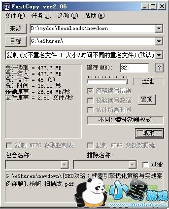 磁盘间相互拷贝文件是司空见惯的事情,通常情况都是利用windows自带的复制粘贴功能来实现的。这样做在数目较小的情况下倒也没什么问题,但是数目较大时,系统自带的复制功能就有些力不从心了。这时就需要fastcopy。一个424mb的电影其拷贝时间仅为21秒,传输速度达到了21mb/秒,不知比totalcopy之流快了多少倍。