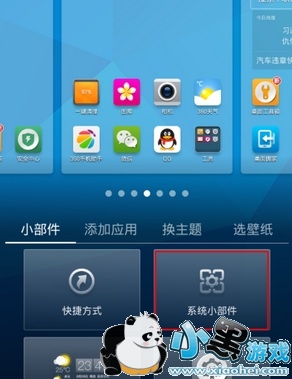 五.下载完成后,先返回到手机桌面,然后点击屏幕底部的【菜单键】,然后点击“添加小部件”,如下图所示。