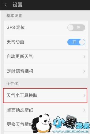 三.进入设置界面后,我们再点击进入“天气小工具”设置,如下示意图。
