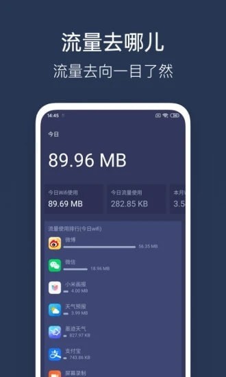 移动、联通、电信流量消耗随时查阅,做您24小时贴心流量管家,预防流量偷跑。