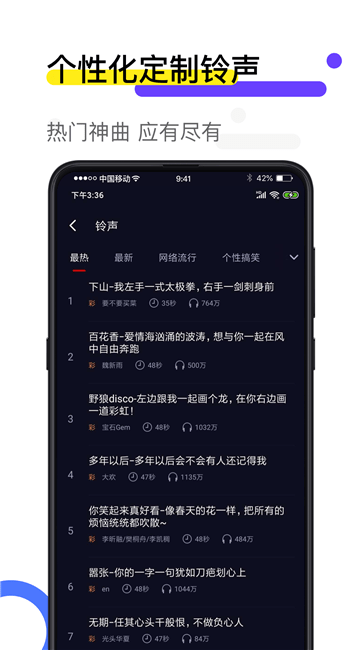 全网热门铃声、搞笑创意视频、手机相册视频,来电一键设置,轻松搞定。