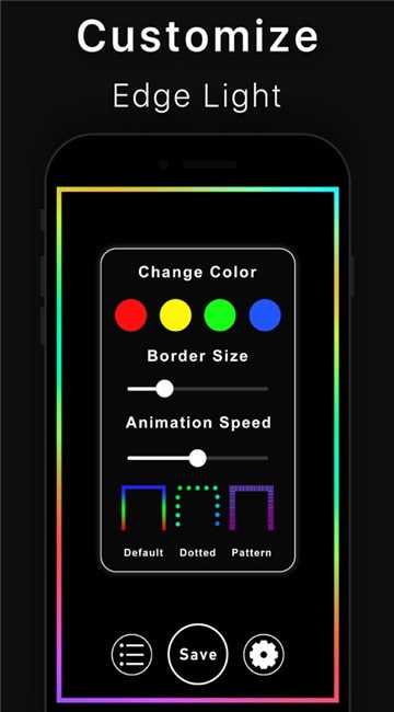Edge pght动态壁纸可为您的手机带来终极个性化。使您的锁屏具有多种颜色的边框灯动画。边缘照明动态壁纸在手机屏幕边缘周围显示移动的彩色边框。动画动态壁纸,通过移动多种颜色使您的手机屏幕令人难以置信。轻松进行自定义,并以所需的颜色,动画速度和边缘光样式创建自己的边缘光。使您的手机边框充满色彩和精美的动画。