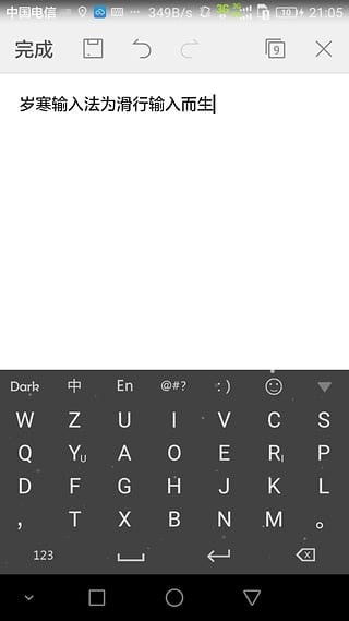 岁寒输入法,专为触屏手机时代而设计,大胆打破固有的键盘布局,创造一种全新的滑行输入体验。