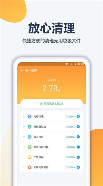 手机提速,能够根据清理手机垃圾提高运行的速度;