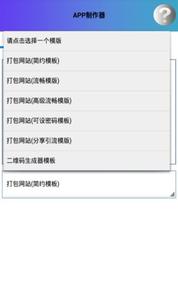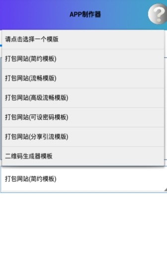 2、可以自动去打包网站让它生成APP的一个应用,操作很简单,支持模板的自由选择,打包网站模板以及打包网站模板X5内核版;