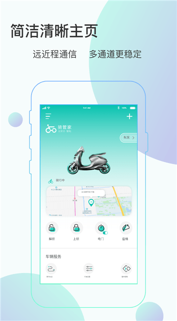 骑管家主要用于电动车智能防盗,为广大电动车用户带来了智能化服务,绑定电动车后,就能随时监测到电动车信息,骑管家app支持钥匙激活或通过扫码的方式绑定电动车,迅速绑定车辆以后,就可以随时追踪到车辆了,起到远程遥控的作用,实时定位同步到应用,车辆的位置和行驶状态一手掌握;骑管家安卓版功能丰富,其中包含了解锁、上锁、电门、座椅等功能,随时操控电动车,车况信息实时阅览,还有更多服务,骑行轨迹、车辆设置、配件管理等服务,自定义查询服务,需要的快来使用吧。