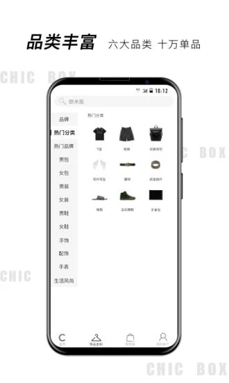 1、六大品类商品,服装配饰、鞋靴箱包、钟表珠宝和数码家电、奢潮周边和生活风尚六大品类;