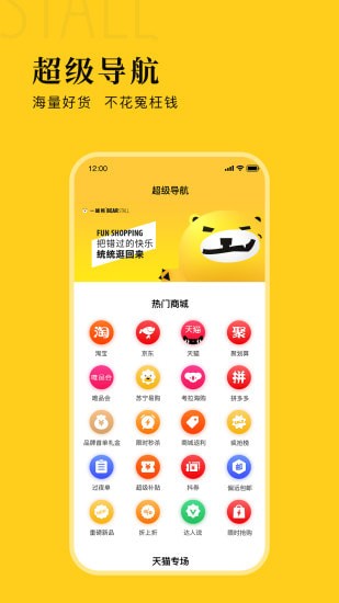 安装一摊熊APP后,通过一摊熊到天猫、淘宝、京东、拼多多等官_方平台全部有意想不到的优惠,自用超省钱