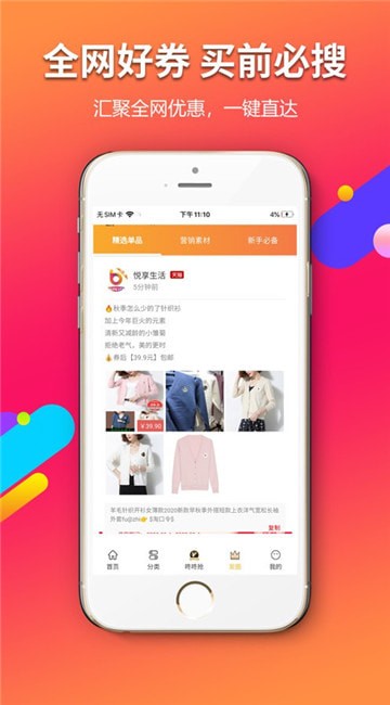 全网知名电商、大牌海量优惠券随时领,一键领券,自用省钱,分享赚钱;