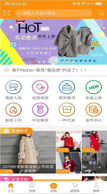 商城平台,提供商户入驻。服装,服装配件的批发及零售。找货,尾货,限时抢购。各种功能应有尽有。为服装商户提供便利的交易批发平台,为用户提供一个服装批发平台,用户可以通过软件获取大量服装货源信息。
