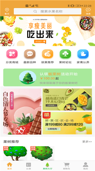 1、精选多品种的水果树领养活动推送,让感兴趣的朋友都能寻找到喜欢的果树;