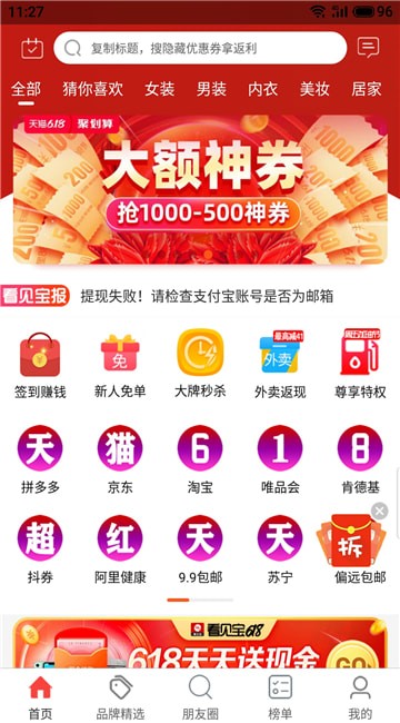 商品搜索,直接粘贴复制商品的名称即可进行搜索相关商品,查找优惠券;