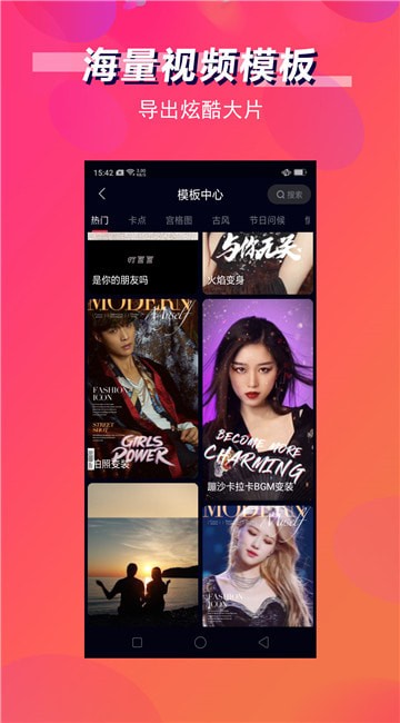 第一剪最新版一个能够让用户自己编辑视频的应用,通过软件用户能够拍摄非常好看的生活短视频,以后就可以用短视频的方式宣传自己的生活,让您的微信好友通过视频了解您的生活动态;软件还提供许多视频模板,您在这里能够选择非常好看的视频模板,让用户的视频可以变得非常的好看,以后您分享的各种短视频将会大不一样;不仅仅可以录制短视频,用户还可以在这里开启美颜自拍模式,以后您就能拥有许多美照,让照片可以变得更好看;想要录制精美的视频、拍摄个性的自拍,那就快来下载第一剪最新版,从此就可以做导演进行拍摄、剪辑、制作等操作了!