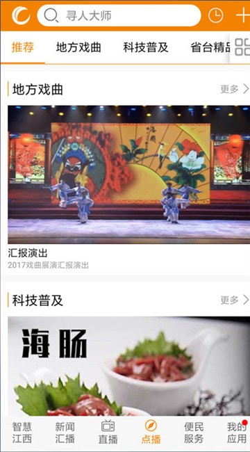 江西地方台江西广电网络手机客户端均可免费播放,地方戏曲,科技普及在线点播。