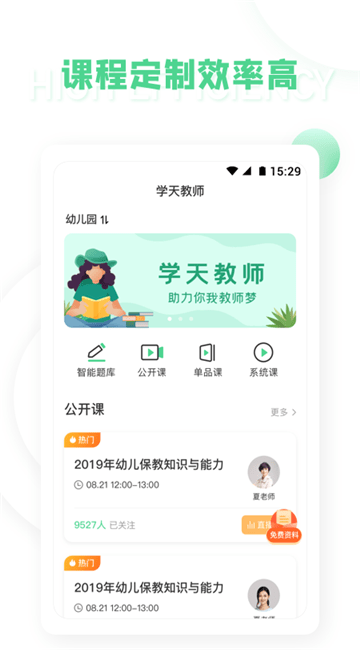 学天教师手机版是一款针对教师资格证考试而打造的通关神器;学天教师安卓版汇聚了教师资格证考试所需要的历年真题、高频考点等海量题库资源,线上即可练习刷题,就能有效巩固相关知识,而且还有定制课程,让学员的学习效率更高;在app上用户能够找到多种课程和考试相关的复习题库,帮助学员在考试方面能够快速的提高,解决学员听课、水体的两大需求;并且在这里还有专业名师为用户讲解考试的重点和技巧,通过模拟练习的方式来反复进行提高,让你在学习之后轻松获得资格证书,考试不是问题;需要的用户可以来下载体验。
