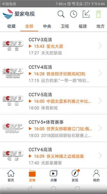 1、进入软件的直播界面,能够查看带来的所有电视频道