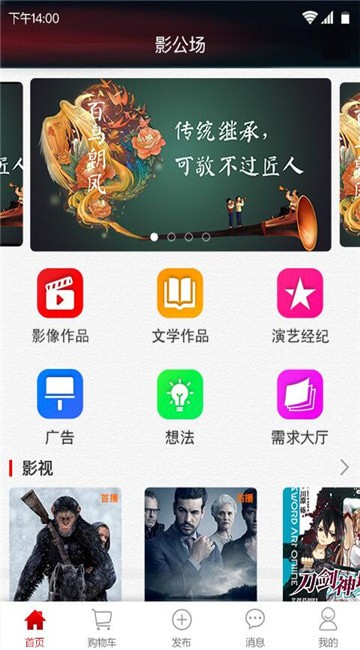 点击我的,发布、邀请和申请、合同、店铺、影片库等都能在此管理
