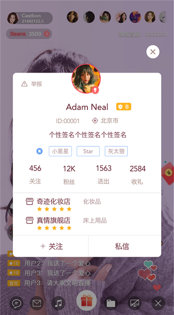 -体验流畅:高清的直播画面,实时的聊天,礼物动效,私聊悄悄话;