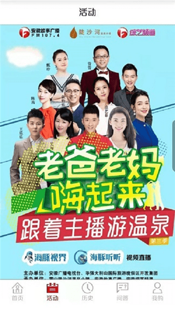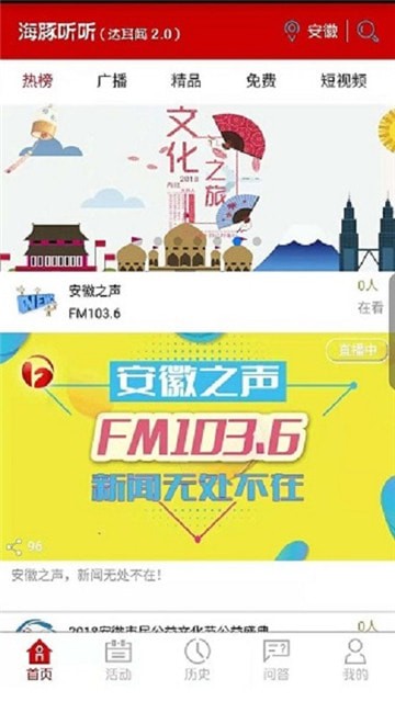 海豚听听下载安装是安徽广播电视台发布的影音类软件。用户可以在海豚听听软件上随时随地畅享安徽广播电视台优质的节目,还能收听安徽之声FM103.6广播,免费点播坚强的后盾、花开花落、如果你还在等,还能观看短视频、视频直播活动等,有需要的朋友快来下载使用吧!