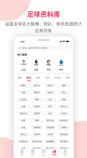 资料库:覆盖全球各大联赛的数据唾手可得。