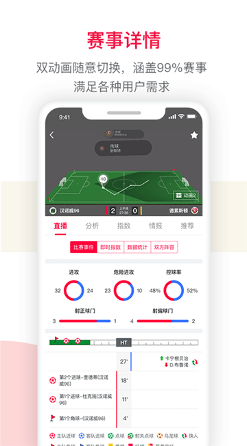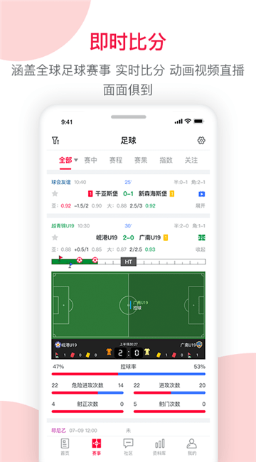 即时比分:最快的足球、篮球、网球比分及比分推送,并提供现场比赛数据直播;