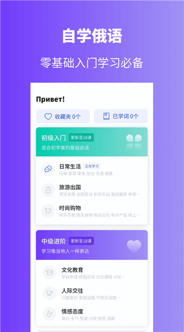 1、让更多想要学习俄语的用户可以通过软件学习更多的俄语知识。