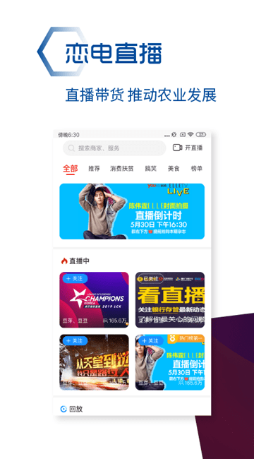 恋电最新版是一款以“直播+电商”的形式,致力产业扶贫、消费扶贫的软件,以电商直播的方式售卖全国各地极具特色的农副产品,致力消费扶贫、产业扶贫,帮助农民脱贫致富,赚取收益,小视频,让公益事业走的更远,让老百姓的农作物走的更远,有需要的朋友快来下载使用吧!