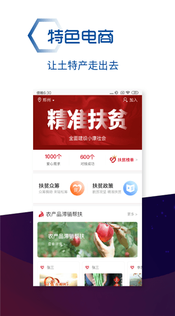 帮助农户将本地土特产带出农村,借助该平台推广到全国各个城市地区;