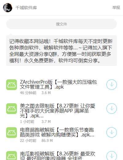 千城软件库最新版拥有海量软件等你来下载使用,各种手机应用应有尽有,还有海量经典好玩的游戏等你来体验,所有应用全部安全无毒,你可以放心下载使用,感兴趣的用户赶快来看看吧!