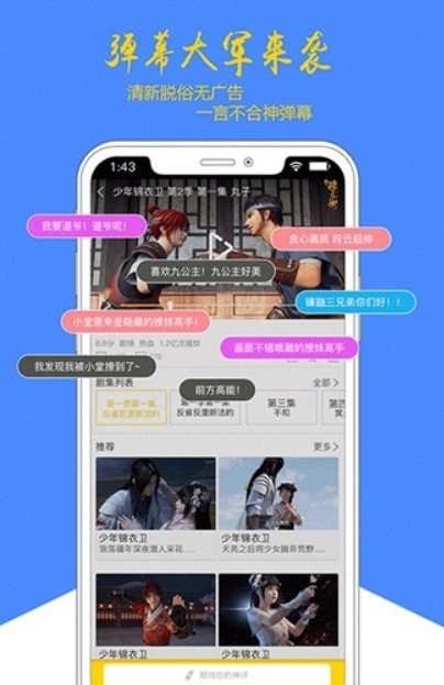 1、清新脱俗无广告,一言不合神弹幕。和大家一起分享看视频的心得,体验实时互动。