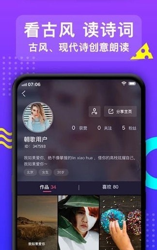 朝歌app是一款可以拍音乐朗读创意短视频的社交软件,