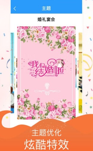 2,专业设计团队精心打造多种炫酷主题模板,如结婚请帖、企业邀请函、幸福之家、青春不毕业、旅行分享、产品促销、舌尖上的美食、贺卡邀请函等