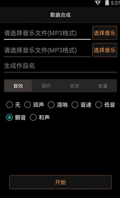 5.歌曲合成:可将两首音乐合成为一首,可以将自己声音和背景音乐合成生成一个音乐文件