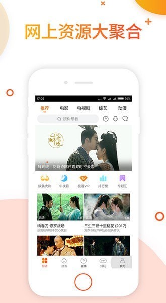 1、聚合了热门电影、电视剧、综艺、动漫、短视频