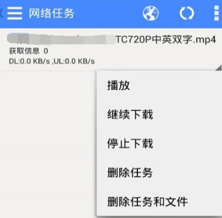 点击视频右下方的三角符号,可进行【播放】,【停止下载】,【删除任务】等操作。