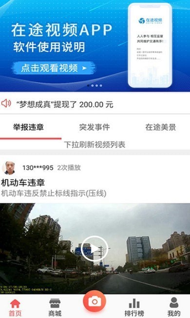 突发事件,在此可以观看其他车主发布的各种突发事件的行程视频;