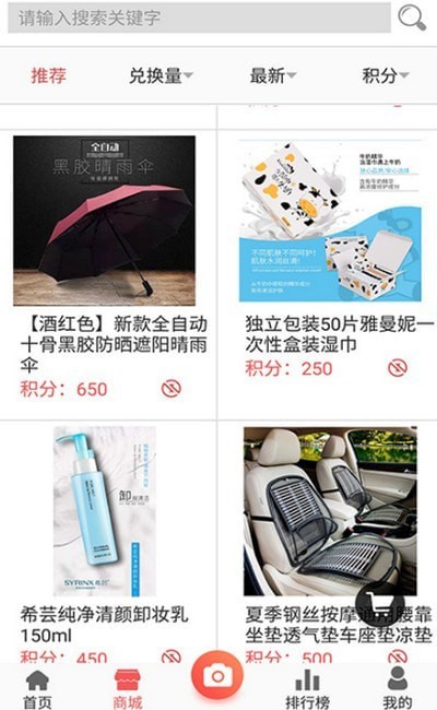 进入商城可以使用积分免费兑换商品,商城之中有着各种各样的商品种类;