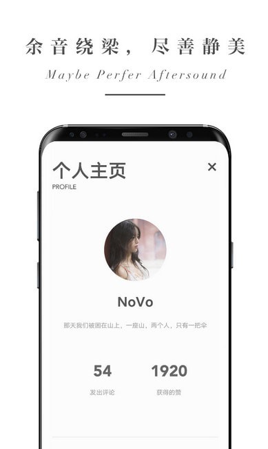 余音以极简优美的设计体验,推荐动听的音乐,旨在带给你干净、纯粹、天籁般的愉悦享受。