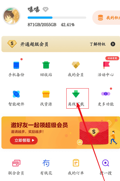 点击我的,打开离线下载