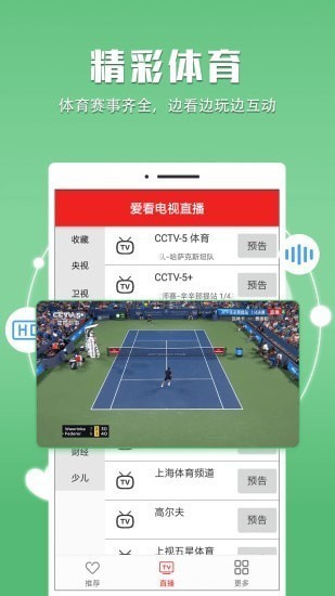 爱看电视直播是一款手机电视直播app,聚合所有的电视频道,高清电视直播随心看,不仅可以看到各大电视频道的实时直播 ,新版本还增加了附近直播功能,快来单机8下载体验吧!