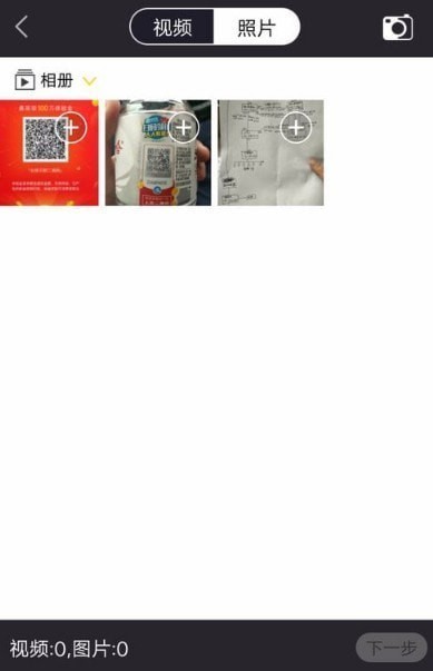 然后就可以回到我们的编辑界面了,点开首页的“视频编辑”,他可以调出我们手机里存放的视频文件、图片文件,这些就是我们剪辑的素材了。