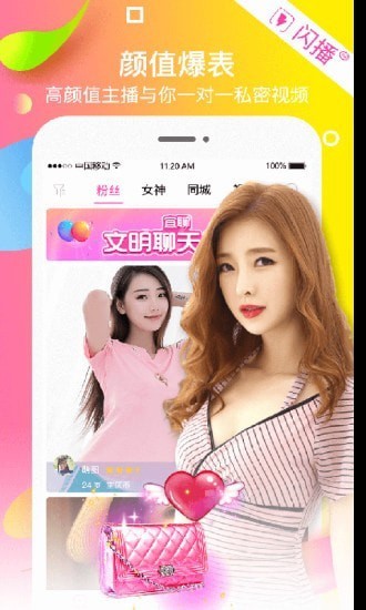 闪播创新传统直播形式,将直播、聊天、交友、约会等社交功能融于一体。告别枯燥的文字聊天,打造新潮的视频聊天交友模式,让你与女生可以一对一视频聊天,真人视频交友,真人视频聊天,让你聊天更尽兴。因此,闪播不仅是款直播软件,还是一款同城交友约会软件,更是同城约会的一个平台。在闪播,你可以看到众多小姐姐给你带来的视频直播,更可以和小姐姐亲密的一对一视频聊天。而附近交友的功能,更是满足你与附近的小姐姐一对一视频聊天、视频交友、附近约会的需求。幸运的话,你可以在视频中邂逅同城的她。也可以在生活中约会同城的她。