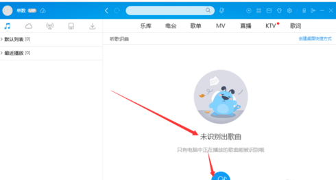 弹出如图所示的界面,说明正在识别歌曲,它可以识别电脑中正在播放的歌曲。