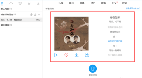 听歌识曲:身边正在播放的歌曲、旋律,打开酷狗识曲,精准匹配歌曲,定位歌词进度