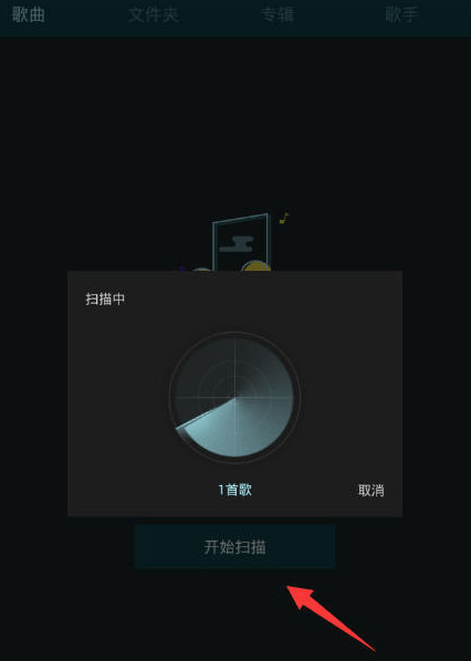 1、海贝音乐作为一款本地音乐播放器,是不提供在线搜索歌曲功能的,用户们初次进入海贝音乐则需要点击“开始扫描”按钮进行扫描。